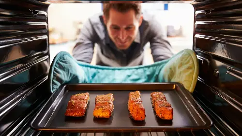 - Remove the salmon from the oven, let it rest for 2 minutes and then serve on top of the cauliflower rice.