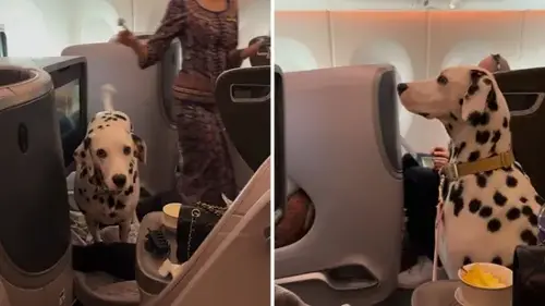 A Dalmatian has become the Internet's darling after a video of the dog sitting quietly in Singapore Airlines' business class surfaced on social media. An Instagram post showed the Swiss Dalmatian named Spotty flying in style. Reportedly, the dog sat in her seat for the 5.5-hour flight from Singapore to Tokyo without taking a toilet break.