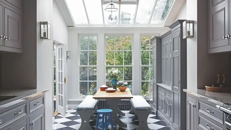 Consider a heritage hue for your kitchen cabinet color, like a timeless white or sage green, as these are unlikely to date or put buyers off.