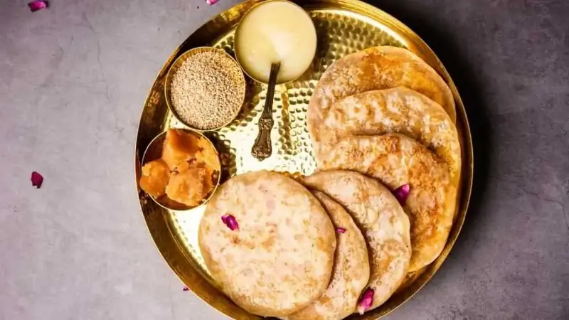 This chilla has a rich flavour of coconut and jaggery, making it perfect for festive mornings. First, make a mixture of fresh grated coconut, crumbled jaggery, and cardamom powder. Let the jaggery melt slightly and blend with the coconut. Then, make a simple wheat flour batter. Pour the batter into a pan, cook one side slightly, and add a spoonful of the coconut-jaggery mix in the centre. Fold the chilla over and press lightly. Let it cook till it turns golden. The melted jaggery and coconut inside give a nice chewy texture and deep taste. This one feels like a warm, sweet parcel.