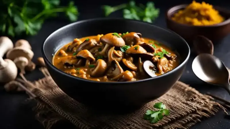 If you are in the mood for something wholesome and comforting, this mushroom and lentil curry is the answer. In a pan, sauté some mushrooms with onions, ginger, and mild spices, then add cooked lentils and tomatoes for a rich, comforting base. Boil until everything comes together, and finish it with fresh coriander. Serve it with chapatis or steamed rice to create a complete and nourishing meal.