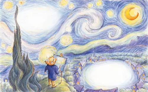 In the story Degas and the Little Dancer, the heroine is Marie, an impoverished young ballet student in Paris who is chosen to pose for the curmudgeonly artist. While other dancers laugh at Degas, Marie looks on him more kindly, and finds herself immortalised in his famous statue, The Little Dancer of Fourteen Years. Then there’s Leonardo and the Flying Boy, where Zoro, an apprentice in Leonardo da Vinci’s studio, is mesmerised by the artist’s famous flying machine. “Zoro couldn’t believe his eyes! An extraordinary machine filled the room. Its wings were like a great eagle.” But, as with Camille and Van Gogh, even when Zoro’s test flight off a nearby mountain top ends in disaster, he never loses faith in his master. “One day people will fly… anything is possible.”